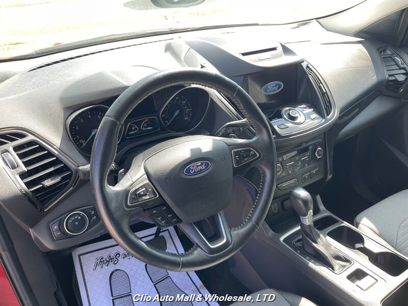 Disfrute de lujo y potencia con el Ford Escape Titanium AWD del 2017. Este SUV está equipado con un potente motor EcoBoost 2.0L Turbo I4 que ofrece 245hp y 275ft. lbs. de torque. Las caracterÃsticas predeterminadas de fábrica incluyen un techo solar panorámico, tapicerÃa de cuero, asientos delanteros calefactados, control de clima automático de doble zona, un sistema de infoentretenimiento con pantalla táctil y navegación, conectividad Bluetooth, cámara de visión trasera y entrada sin llave con arranque por botón. El exterior está elegantemente terminado en Ruby Red Metallic Tinted Clearcoat, mientras que el interior cuenta con acentos en Charcoal Black. Con menos de 83,000 millas en el odómetro, con un promedio de menos de 10,000 millas por año, y calificaciones de eficiencia de combustible de 20 MPG en ciudad y 27 MPG en carretera, este Escape es una excelente opción para aquellos que buscan estilo y rendimiento. No se pierda esta oportunidad de adquirir un vehÃculo en excelente condición.